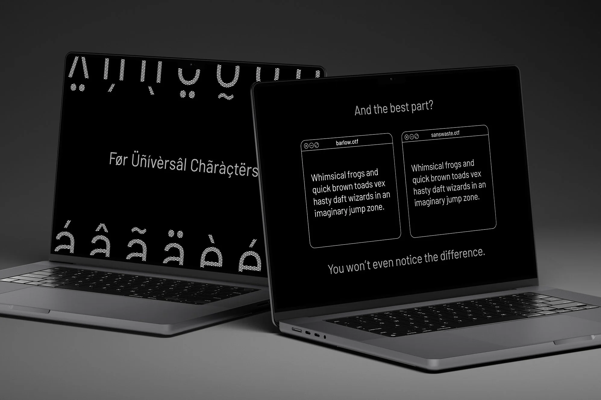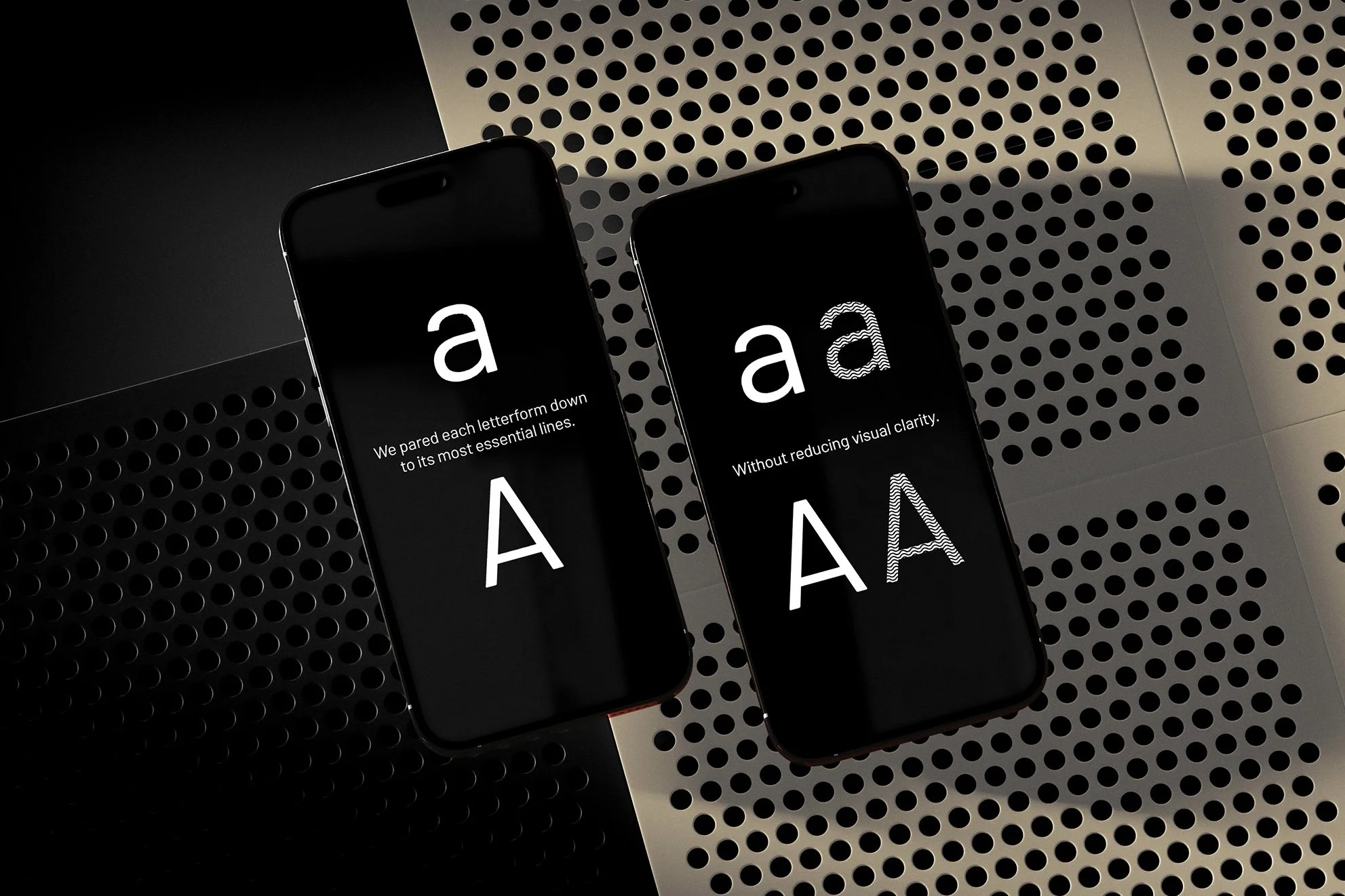 Introducing: Sans Waste. A font designed to use 48% less ink on paper and fewer pixels in dark mode. Made with wave-cut negative space, the typeface proves you can take up less space without losing clarity. Or impact.